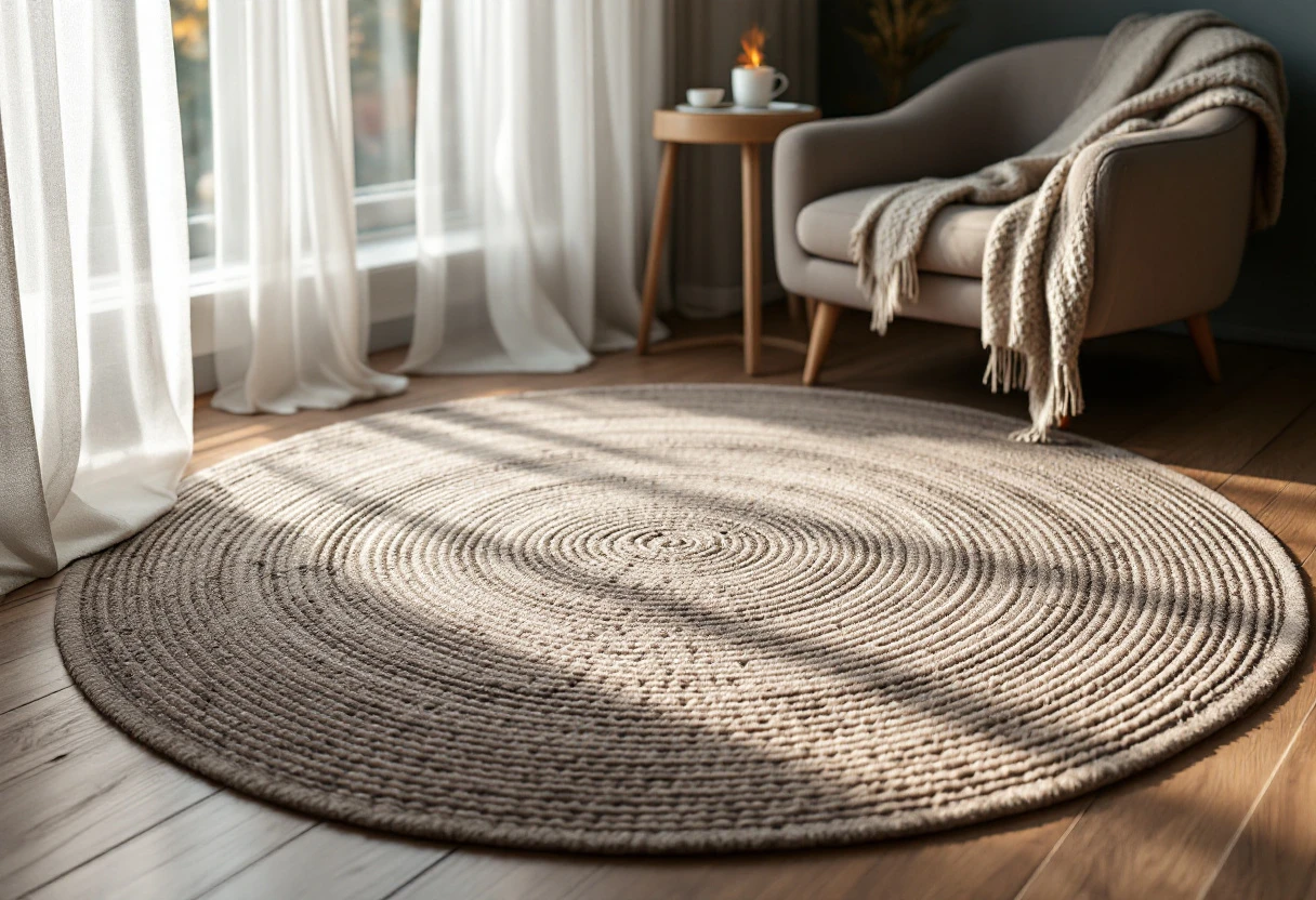 Hygge en clair-obscur : contraster lumière et matières avec un tapis scandinave rond